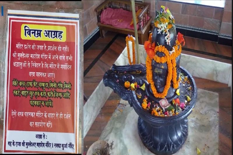 मंदिर के बाहर लगे पोस्टर में लिखा गया है, कि 'मंदिर ऐसी जगह है जहां दर्शन किया जाता है प्रदर्शन नहीं। ऐसे में श्री मुक्तेश्वर महादेव मंदिर में दर्शन के लिए आने वाले सभी लोगों से विनम्र निवेदन है कि वो मर्यादित कपड़े पहनकर दर्शन के लिए पहुंचे। हाफ पैंट, शॉर्ट्स, कटी-फटी जींस, नाइट सूट, स्कर्ट या फिर किसी भी तरह के अमर्यादित कपड़े पहनकर न आएं। ऐसा होने पर मंदिर के बाहर से ही दर्शन करें।”