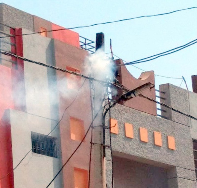 बिजली के पोल पर लगी आग, बॉक्स और केबल जले
