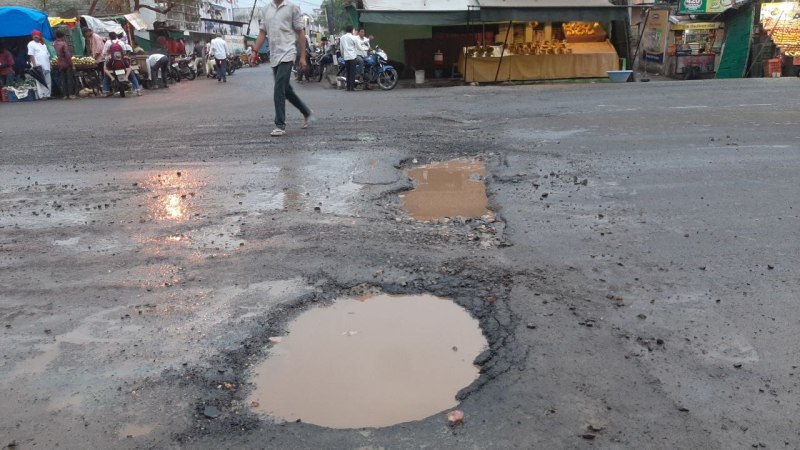 राठी पेट्रोल पंप से रेलवे स्टेशन की ओर सड़क का डामरीकरण करीब एक माह पहले हुआ। राज रेसीडेंसी होटल के पास नाली गुम होने के कारण निकासी का पानी रोड़ पर ही जमा होता है। इसके वैकल्पिक इंतजाम किए बना रोड़ बना दी गई। अब अग्रवाल होटल के सामने डामर की परत बारिश में धुल गई। पहले यहां बनी सीसी रोड़ृ की अंदरुनी परत दिखाई देने लगी है। गडढे में वाहनों के पहिए जाने पंचर हो रहे हैं।