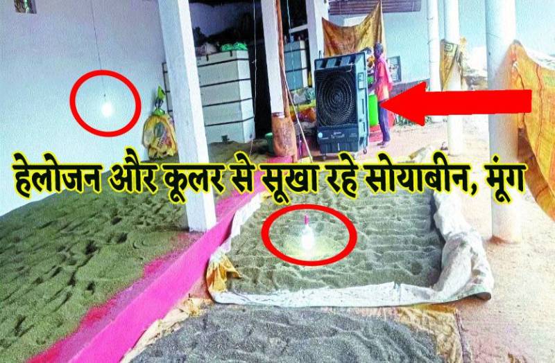 8 हेलोजन और 2 कूलर से सूखा रहे सोयाबीन, मूंग और उड़द, जानिये ऐसी क्या मजबूरी