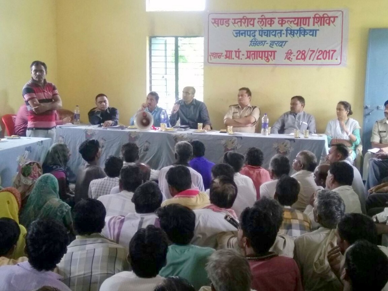 खिरकिया. खंडस्तरीय लोक कल्याणकारी शिविर का आयोजन शुक्रवार को ग्राम पंचायत प्रतापपुरा में किया गया। कलेक्टर अनय द्विवेदी, एसपी राजेश कुमार सिंह, अपर कलेक्टर बाबूलाल कोचले, जिपं सीईओ डॉ. केडी त्रिपाठी सहित अन्य जिला स्तरीय अधिकारी उपस्थिति हुए। कलेक्टर के सामने ग्रामीणों ने अपनी समस्याएं रखी। शिविर के दौरान विभिन्न ग्राम पंचायत और राजस्व 5-5, खाद्य विभाग के 2 और पीएचई, स्वास्थ्य विभाग व जनपद से संबंधित 1-1 आवेदन प्राप्त हुआ। कुछ का मौके पर ही निराकरण किया गया। इस दौरान जपं अध्यक्ष जगदीश सोलंकी, सांसद प्रतिनिधि संतोष कलम, कृषि समिति सभापति ममता कलम, टीआई प्रमेंद्र कुमार सहित जिला व खंड स्तरीय अधिकारी मौजूद थे। कलेक्टर ने जानकारी दी कि 15 अगस्त से 2 अक्टूबर तक कृषकों को नि:शुल्क खसरा नकलों का वितरण किया जाएगा।