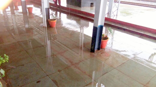 बारिश के कारण स्टेशन परिसर गीला हो जाता है। यात्रियों को परेशानियां होती है। इस संबंध में वरिष्ठ अधिकारियों को अवगत कराया गया है।