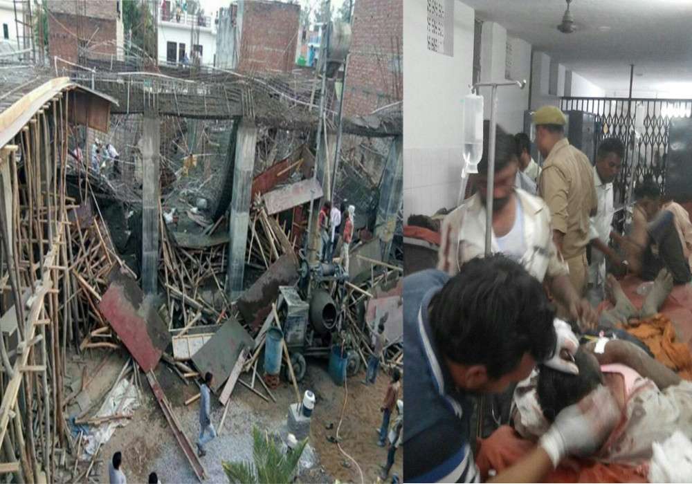 निर्माणाधीन विद्यालय की छत ढही, दर्जनों मजदूर दबे, देखें हादसे की खौफनाक तस्वीरें