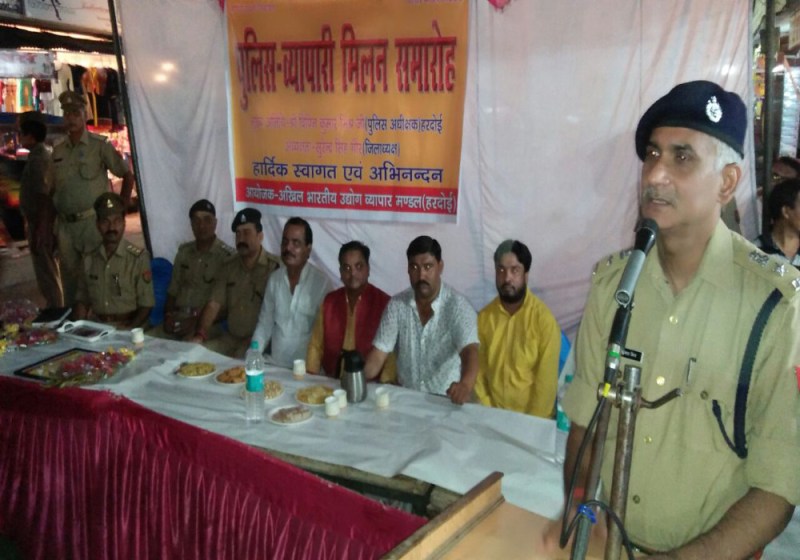 हरदोई. जिले में माफियाओं पर हुई कार्रवाई से मुदित व्यापारियों ने एसपी विपिन मिश्र का समारोह पूर्वक अभिनन्दन किया । शहर में अखिल भारतीय उद्योग व्यापार मंडल की ओर से पुलिस-व्यापारी मिलन समारोह का आयोजन किया गया जिसकी अध्यक्षता व्यापार मंडल के जिलाध्यक्ष सुरेंद्र सिंह गौर ने की। कार्यक्रम में मुख्य अतिथि के रूप में एसपी विपिन कुमार मिश्र, विशिष्ट अतिथि एएसपी ज्ञानंजय सिंह व सीओ सिटी प्रताप सिंह चौहान ने भाग लिया। कार्यक्रम के दौरान व्यापार मंडल के जिलाध्यक्ष ने पदाधिकारियों के साथ एसपी विपिन मिश्र, एएसपी , सीओ सिटी को सम्मान पत्र व मोमेंटो देकर सम्मानित किया। एसपी ने कार्यक्रम के समापन के बाद व्यापार मंडल के पदाधिकारियों के आपसी सहयोग से नगर के मुन्ने मियां चौराहे पर लगाये गए 4 सीसीटीवी कैमरों का निरीक्षण कर उनका शुभारम्भ किया।