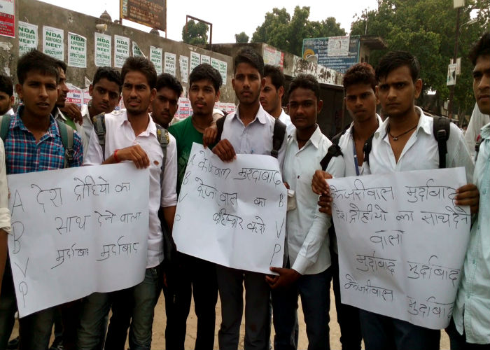 अखिल भारतीय विद्यार्थी परिषद के कार्यकर्ताओं ने सासनी गेट इलाके में केजरीवाल के खिलाफ नारेबाजी करते हुए प्रदर्शन किया और पुतला फूंका। प्रदर्शनकारियों ने केजरीवाल को देश से निकालने, उन्हें देशद्रोही और आईएसआई का एजेंट घोषित करने की मांग की है। साथ ही विरोध प्रदर्शन जारी रखने का ऐलान किया है।