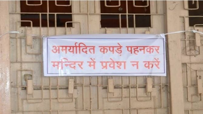 शहर के खाटू श्याम मंदिर में मदिर कमेटी ने बोर्ड लगाया कि श्रद्धालुओं से आग्रह है कि सभी महिलाएं एवं पुरुष मंदिर में मर्यादित वस्त्र पहनकर ही आएं। मंदिर परिसर में हाफ पेंट, बरमुडा, मिनी स्कर्ट, नाइट सूट, कटी-फटी जींस पहनकर न आने की अपील की है। वहीं इसी क्रम में नेहरु कॉलोनी स्थित माता वैष्णो देवी मंदिर में अमर्यादित कपड़ों में प्रवेश न करने को लेकर बैनर लगा दिया गया है। इसी के साथ ही शहर के अन्य मंदिरों में यह बैनर लगाए जा रहे हैं। इन बैनरों के लगने के साथ ही लोगों में चर्चाएं तेज हो गई है। छोटे कपड़े, कटी-फटी जींस, हाफ पैंट आदि कपड़ों को पहनकर आने वालों को मंदिर में पूजा-अर्चना करने से रोक दिया जाएगा।