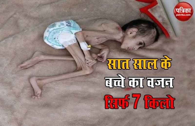 नई दिल्ली: सामान्य तौर पर बच्चों के स्वास्थ्य के लिए पूरा परिवार सतर्क रहता है लेकिन यमन (Yemen) में हालात बेहद बदतर हो गए हैं। सालों से युद्ध की मार झेल रहे यमन वासियों के लिए इतने बुरे दिन आ गए हैं कि लोगों को अपने बच्चों के स्वास्थ्य की रक्षा करना भी भारी पड़ रहा है। यहां एक दशक से गृह युद्ध की विभीषिका झेल रहे यमन वासी अब दिमागी लकवा यानी सेरेब्रल पाल्सी (Cerebral Palsy) जैसी बीमारी की चपेट में आ रहे हैं। बीते दिनों एक 7 साल के बच्चे की तस्वीीर वायरल हो रही है, जिसका वजन महज 7 किलोग्राम रह गया है।