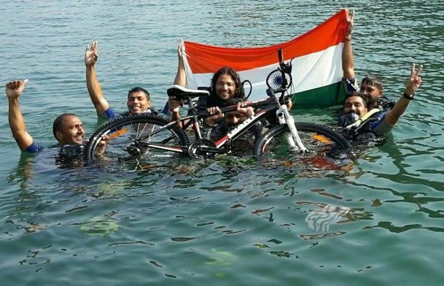 जींद। टोहाना निवासी रामलाल शर्मा ने 6 जनवरी को समुद्र में साइकिलंग करने का नया विश्व रिकार्ड कायम किया है। रामलाल शर्मा ने कहा कि वे चाहते हैं कि युवा वर्ग भी उनसे प्रेरणा लेकर इस खेल को अपनाएं। जींद के एक निजी होटल में पत्रकारों से बातचीत करते हुए टोहाना निवासी रामलाल ने कहा कि उन्होंने समुद्र की 16.40 फुट की गहराई में जाकर साइकलिंग की। एक बार तो उन्हें लगा कि उनकी जान नहीं बचेगी, मगर उन्होंने हौसला नहीं छोड़ा और वे अपने काम को पूरा करने में सफल रहे।