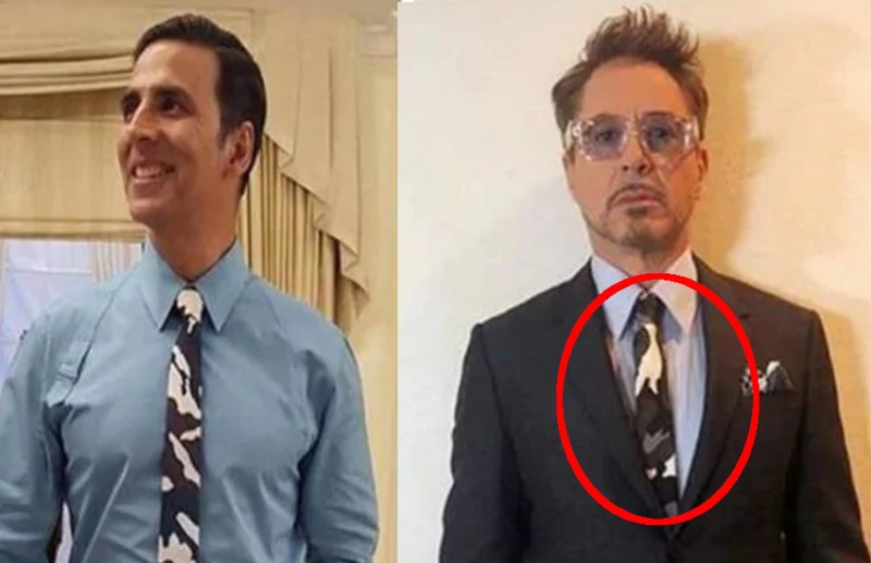 दरअसल रॉबर्ट डाउनी ने अपने इंस्टाग्राम अकाउंट पर एक तस्वीर शेयर की थी जिसमें वह सूट और टाई पहने नजर आ रहे हैं। तस्वीर देखकर अक्षय को महसूस हुआ कि उनके पास भी ऐसी ही एक टाई है। अक्षय कुमार ने उस टाई में अपनी एक तस्वीर निकाल कर उसे रॉबर्ट की फोटो के साथ शेयर किया।