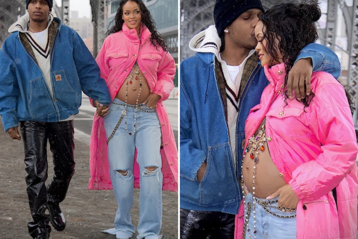 इन तस्वीरों में रिहाना बेबी बंप को फ्लान्ट करते दिख रही हैं। उनका ये लुक लोगों को काफ़ी पसंद आ रहा हैं। रिहाना ने पिक ओवर जैकेट को ब्लू जींस के साथ पाना हैं। पिक और ब्लू कलर का कॉम्बिनेशन उन पर काफ़ी जम रहा हैं। रिहाना ने जैकेट के नीचे की कुछ बटनों को खोल रखा हैं। जिससे उनका बेबी बंप अच्छे से दिख रहा हैं।