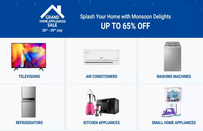 नई दिल्ली:Flipkart पर Grand Home Appliances Sale का आयोजन किया गया है जो कल यानी 26 जुलाई से शुरू हो गयी है और 29 जुलाई तक चलेगी। Flipkart सेल के दौरान Axis Bank Credit Card से भुगतान करने पर कैशबैक ऑफर दिया जा रहा है। वहीं ICICI और HDFC के तहत EMI पर प्रोडक्ट खरीदते हैं तो 5 फीसदी का डिस्काउंट मिलेगा। इसके अलावा सेल में एक्सचेंज ऑफर का भी लाभ मिल रहा है।