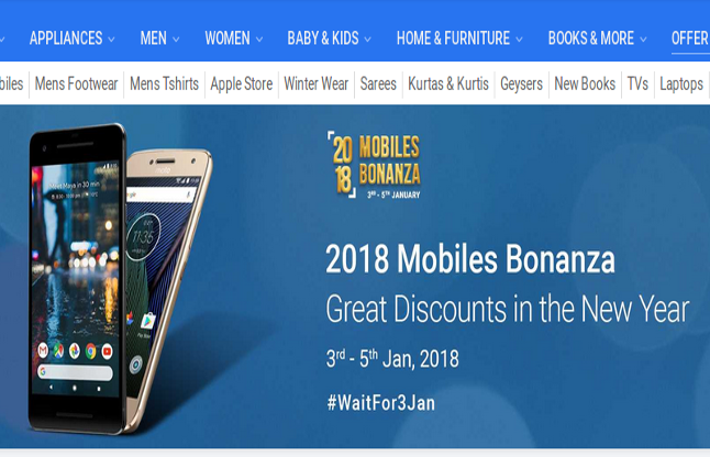 नए साल में नया स्मार्टफोन लेने की सोचने वालों के लिए Flipkart जबरदस्त आॅफर लेकर आई है। यह कंपनी मोबाइल 2018 न्यू ईयर सेल (Mobile 2018 New year Sale) 2018 Mobile Bonanza लेकर आई है जिसमें 20 मोबाइल पर ऑफर दिए जा रहे हैं। इस सेल का आयोजन 3 जनवरी से 5 जनवरी 2018 तक किया जा रहा है। इस ऑफर के तहत कंपनी 61,000 रुपए की कीमत वाले गूगल पिक्सेल फोन को 39,999 रुपए में खरीद रही है। इसका मतलब इस पर 21 हजार रुपए तक का डिस्काउंट दिया जा रहा है। पैनासोनिक ईलुगा ए3 फोन 11,490 रुपए के बदले 6,999 रुपए दे रही है।
