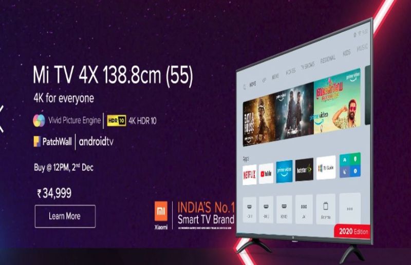 नई दिल्ली:Mi TV 4X 55-Inch 2020 Edition आज दोपहर 12 बजे से भारत में सेल के लिए उपलब्ध है। मी टीवी 4एक्स 55 इंच 2020 एडिशन की भारत में कीमत 34,999 रुपये रखी गयी है। ग्राहक टीवी को ई-कॉमर्स साइट Amazon, Mi.com, और मी होम स्टोर से खरीद सकते हैं।