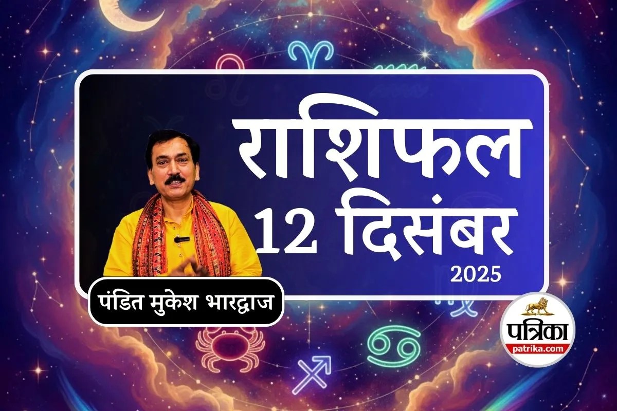 Aaj Ka Rashifal 12 December 2025 : आज 12 दिसंबर 2025, पौष मास का आठवां दिन और शुक्रवार है। ज्योतिषीय गणना के अनुसार, इस दिन सूर्य देव वृश्चिक राशि में और चंद्रमा सिंह राशि से कन्या राशि में गोचर करेंगे। चूँकि आज शुक्रवार है, आप धन और ऐश्वर्य की देवी माँ लक्ष्मी को समर्पित व्रत रखकर उनकी विशेष कृपा प्राप्त कर सकते हैं। आर्थिक संकटों से मुक्ति पाने के लिए माँ लक्ष्मी की पूजा में चावल की खीर और श्रीफल का भोग लगाना, साथ ही कमलगट्टे की माला से उनके नामों का जप करना अत्यंत लाभकारी सिद्ध होगा। लक्ष्मी वैभव व्रत करने से आपकी मनोकामनाएँ पूरी होंगी और सभी दुख दूर होंगे। आइए जानते हैं पंडित मुकेश भारद्वाज से यह दिन सभी 12 राशियों के लिए कैसा रहने वाला है।
