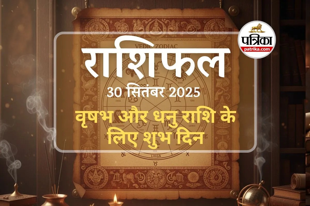 Horoscope Today, 30 September 2025, Aaj Ka Rashifal in Hindi : आज का राशिफल : आज का दिन 12 राशियों के लिए कर्मठता, आर्थिक प्रगति और सामाजिक सक्रियता के मिश्रित परिणाम लेकर आया है। वृषभ, धनु, और मिथुन राशि वालों के लिए आज का दिन आत्मविश्वास में वृद्धि, धन कोष में वृद्धि, और परिजनों के सहयोग के कारण विशेष रूप से शुभ रहेगा। वहीं, कर्क राशि के जातकों के रुके हुए कार्य पूरे होंगे और संतान सुख प्राप्त होने के योग बन रहे हैं। ज्योतिष पंडित चंदन श्यामनारायण व्यास से जानिए कैसा रहेगा मेष, वृषभ, मिथुन, कर्क, सिंह, कन्या, तुला, वृश्चिक, धनु, मकर, कुंभ और मीन राशि वालों का आज का राशिफल।