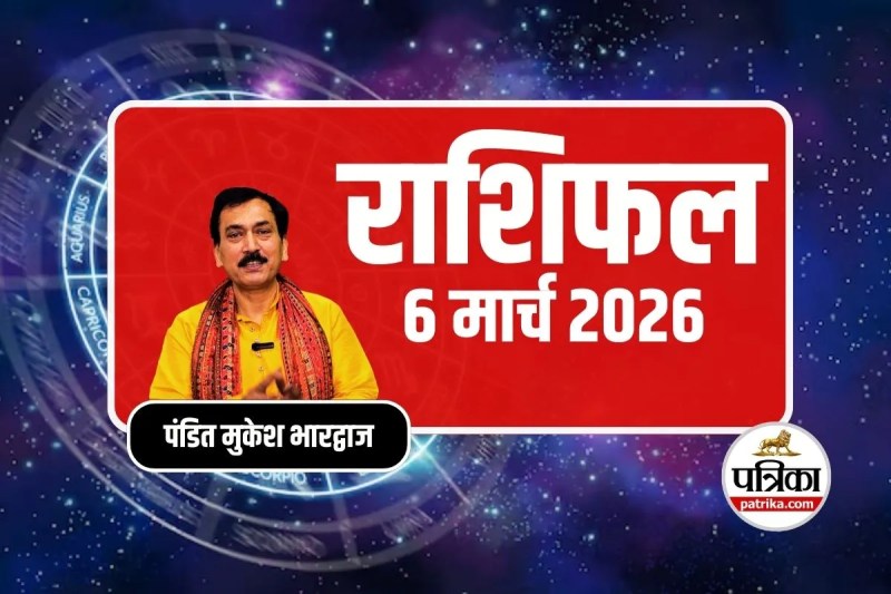 Aaj Ka Rashifal 6 March 2026: आज का राशिफल 6 मार्च 2026 : आज 6 मार्च 2026, शुक्रवार को चैत्र माह के कृष्ण पक्ष की चतुर्थी तिथि है। इस दिन भालचंद्र संकष्टी चतुर्थी व्रत रखा जाता है, जो भगवान गणेश को समर्पित होता है। धार्मिक मान्यता है कि इस दिन विधि-विधान से गणेश जी की पूजा करने से जीवन की विघ्न-बाधाएं दूर होती हैं और सुख-समृद्धि की प्राप्ति होती है। ज्योतिष मुकेश भारद्वाज के अनुसार ग्रह-नक्षत्रों की स्थिति का प्रभाव सभी 12 राशियों पर अलग-अलग रूप से पड़ता है। ऐसे में जानें मेष से मीन तक सभी राशियों का आज का राशिफल, शुभ रंग और लकी नंबर। (Daily Horoscope)