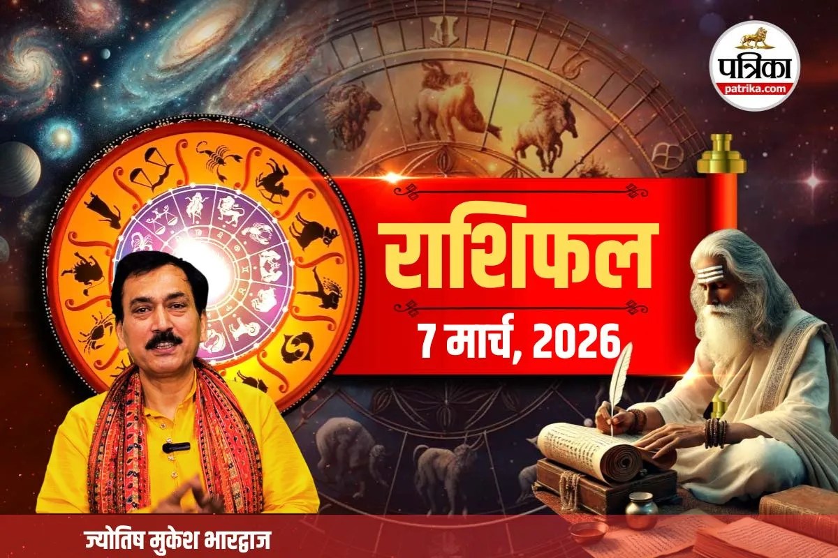 Aaj Ka Rashifal 7 March 2026: आज का राशिफल 7 मार्च 2026: शनिवार का दिन धार्मिक और ज्योतिषीय दृष्टि से खास माना जाता है। आज चैत्र मास के कृष्ण पक्ष की चतुर्थी तिथि है। दिन के पहले भाग में चित्रा नक्षत्र और उसके बाद स्वाती नक्षत्र का प्रभाव रहेगा। साथ ही आज सर्वार्थसिद्धि योग भी बन रहा है, जो कई शुभ कार्यों के लिए अनुकूल माना जाता है। ज्योतिष के अनुसार ग्रह-नक्षत्रों की स्थिति सभी 12 राशियों के जीवन पर अलग-अलग प्रभाव डालती है। ऐसे में पंडित मुकेश भारद्वाज से जानिए मेष से मीन तक सभी राशियों का आज का राशिफल, साथ ही शुभ रंग और लकी नंबर।