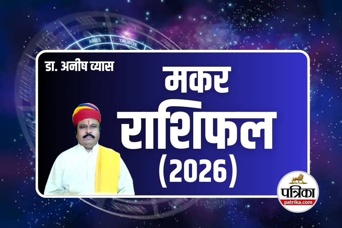 Makar Varshik Rashifal 2026 : ज्योतिषाचार्य डा.अनीष व्यास ने बताया कि साल 2026 मकर राशि के जातकों के लिए उपलब्धियों और नए अवसरों का साल साबित होने वाला है। इस वर्ष सफलता पाने के लिए मेहनत और कर्मप्रधान रवैये की आवश्यकता रहेगी। ग्रहों की स्थिति और उनका गोचर आपके जीवन में महत्वपूर्ण प्रभाव डालेंगे, जिससे परिवारिक संबंध मजबूत होंगे और भाई-बहनों के साथ जुड़ाव बढ़ेगा। शनि, बृहस्पति और राहु का गोचर आपके आत्मविश्वास, संचार क्षमता और रचनात्मकता को बढ़ाएगा। इसके अलावा आपका कौशल और प्रतिस्पर्धा में सफलता भी विशेष रूप से बढ़ेगी। हालांकि, स्वास्थ्य संबंधी कुछ सावधानियां बरतना जरूरी होगा। जितना आप अपनी जिम्मेदारियों और कर्मों पर ध्यान देंगे, उतना ही आपको सालभर सफलता मिलती जाएगी।