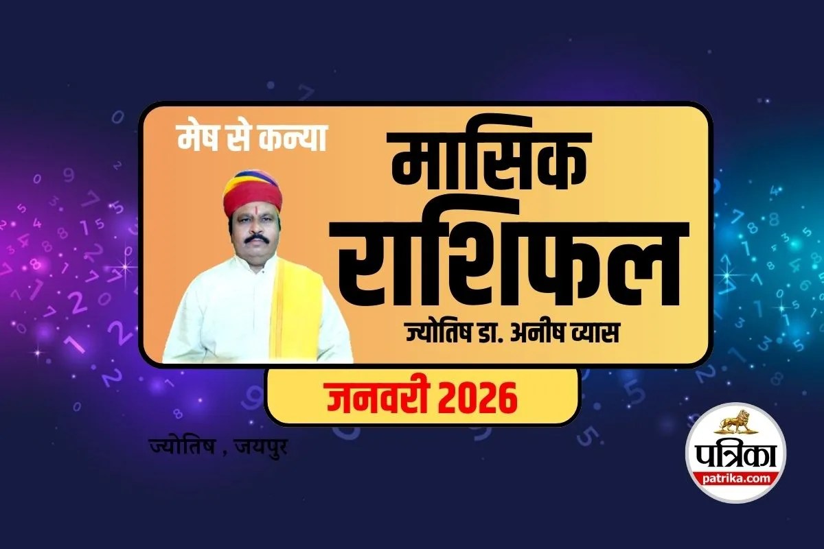 January Monthly Horoscope 2026 : नया साल 2026 अपने साथ नई उम्मीदें और नई चुनौतियां लेकर आ रहा है। ग्रहों की बदलती चाल का हमारे जीवन पर गहरा प्रभाव पड़ता है। जनवरी माह की शुरुआत मेष, वृष, मिथुन, कर्क, सिंह राशियों के लिए 'गोल्डन पीरियड' साबित होने वाली है, तो कुछ को करियर और सेहत के मोर्चे पर अतिरिक्त सावधानी बरतने की जरूरत होगी। इस विस्तृत राशिफल में हम मेष से लेकर कन्या राशि तक के जातकों के भविष्य का विश्लेषण करेंगे। चाहे नौकरी में प्रमोशन की बात हो या व्यापार में मंदी का डर, यहाँ आपको अपनी हर समस्या का समाधान और ज्योतिषी उपाय मिलेंगे। आइए जानते हैं भविष्यवक्ता डा. अनीष व्यास से जनवरी 2026 आपके भाग्य के सितारों में क्या लिखा है।