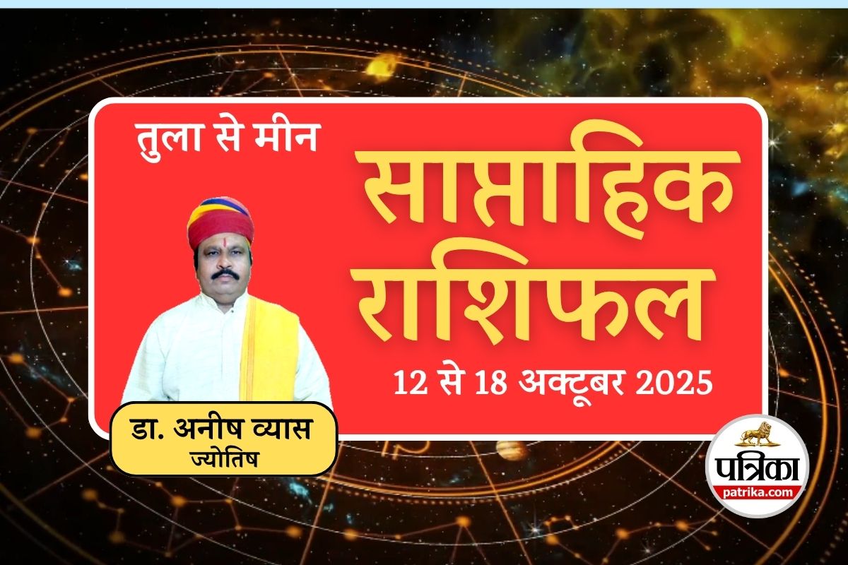 Saptahik Rashifal (12 -18 October 2025) : साप्ताहिक राशिफल 12 से 18 अक्टूबर 2025 : यह सप्ताह तुला, वृश्चिक, धनु, मकर, कुंभ और मीन राशि के जातकों के लिए जीवन के विभिन्न क्षेत्रों में मिला-जुला प्रभाव लेकर आ रहा है। इस दौरान कुछ राशि वालों को जहाँ कार्यक्षेत्र में बड़े बदलाव और आर्थिक लाभ के नए स्रोत मिलने की संभावना है, वहीं दूसरों को परिश्रम के मुकाबले कम फल की प्राप्ति हो सकती है, जिसके कारण आर्थिक संतुलन साधना एक चुनौती बन सकता है। रिश्तों के मोर्चे पर कुछ राशियां प्रेम संबंधों में प्रगाढ़ता और पारिवारिक सफलता का आनंद लेंगी जबकि अन्य को तालमेल बिठाने और अहंकार से बचने की आवश्यकता होगी। पंडित डॉ. अनीष व्यास बताते हैं कि ग्रहों की चाल संकेत दे रही है कि यह सप्ताह सूझबूझ, धैर्य और सही समय पर कार्य करने को महत्व देने वालों के लिए अधिक फलदायी होगा।