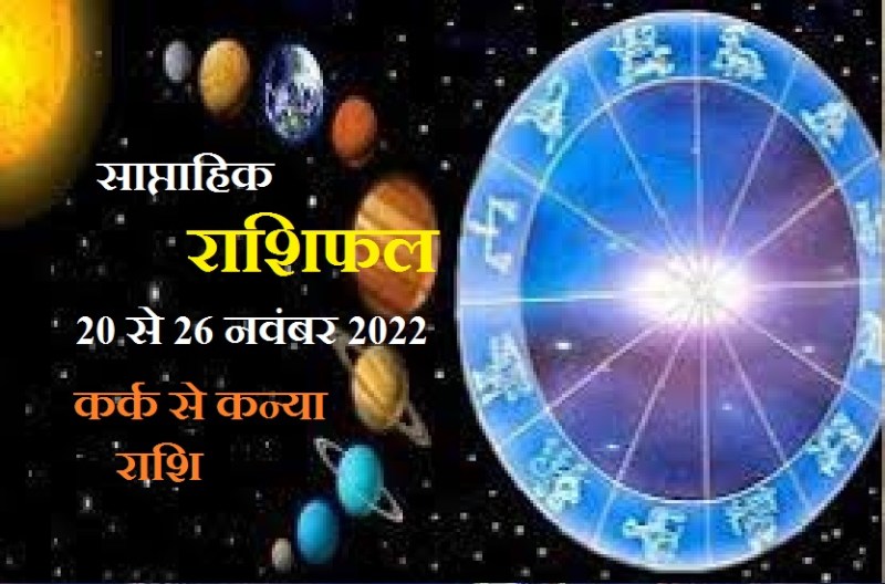 दरअसल साप्ताहिक राशिफल निकालते समय सभी 12 राशियों का भविष्यफल बताया जाता है। तो चलिए जानते हैं कि ज्योतिष के जानकार पंडित सुनील शर्मा के अनुसार इस सप्ताह कर्क से कन्या राशि के जातकों के लिए 20 से 26 नवंबर 2022 तक क्या कहता है।