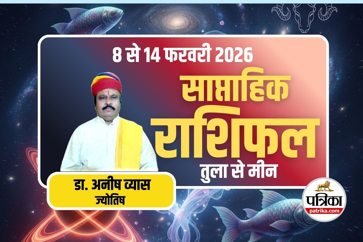 Weekly Rashifal 8 Feburary to 14 February 2026: फरवरी 2026 का यह हफ्ता ज्योतिषीय दृष्टि से एक बड़े बदलाव का गवाह बनने जा रहा है। जहां एक ओर 8 फरवरी को शुक्र और यूरेनस की टक्कर रोमांस में अप्रत्याशित मोड़ लेकर आएगी, वहीं 10 तारीख को शुक्र का मीन राशि में प्रवेश प्यार को एक गहरी और भावुक दिशा देगा। लेकिन सबसे बड़ी हलचल 13 फरवरी को होगी, जब 'कर्मफल दाता' शनि देव अपनी यात्रा बदलते हुए मेष राशि में प्रवेश करेंगे। शनि का यह गोचर अगले तीन सालों के लिए हमारे आत्मविश्वास और कार्यशैली को परिभाषित करेगा। आइए जानते हैं ज्योतिषी डॉ अनीष व्यास से इन ग्रहों के फेरबदल के बीच तुला से मीन राशि के जातकों के लिए यह सप्ताह (8-14 फरवरी) क्या खास लेकर आया है। (Saptahik Rashifal8 Feburary to 14 February 2026)