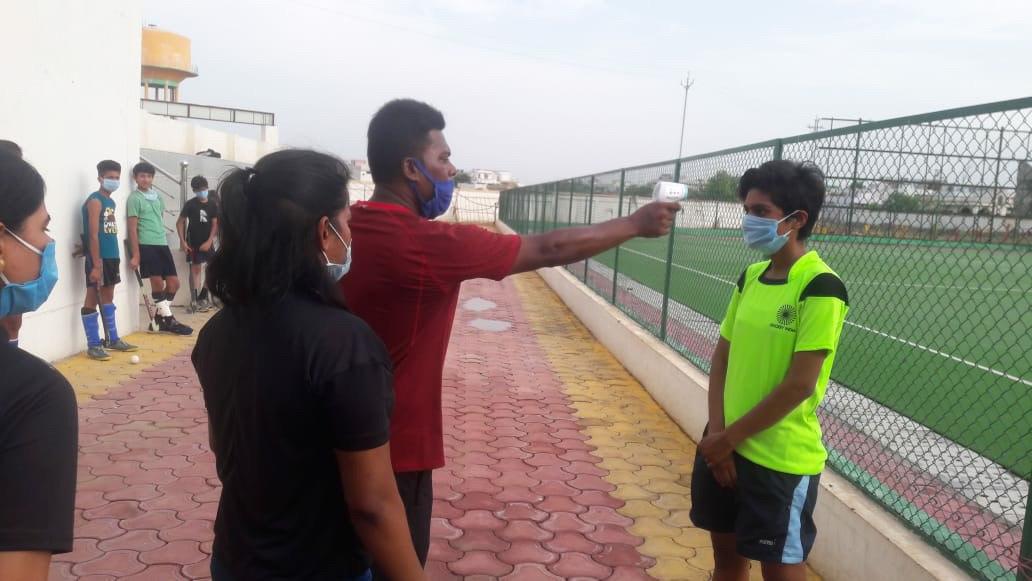 धुलाए। इसके बाद खिलाडिय़ों ने कुछ देर सोशल डिस्टेंसिंग के साथ खेल का अभ्यास भी किया।
