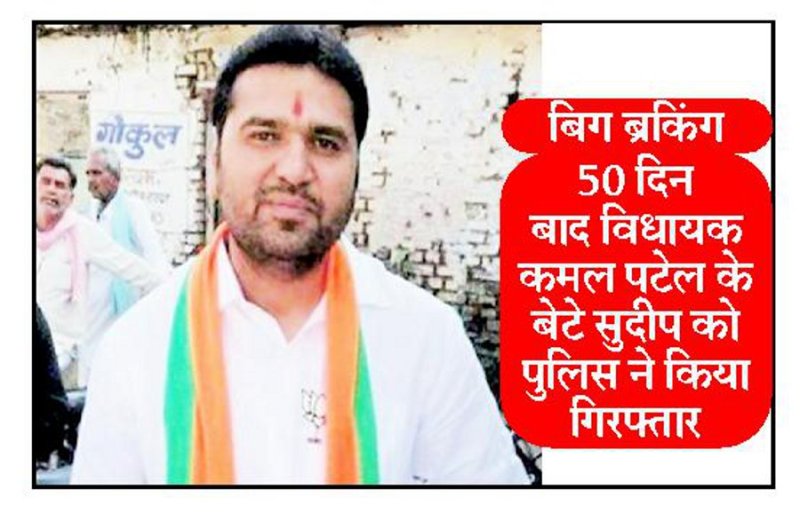 BREAKING : 50 दिन बाद विधायक कमल पटेल के बेटे सुदीप को पुलिस ने किया गिरफ्तार