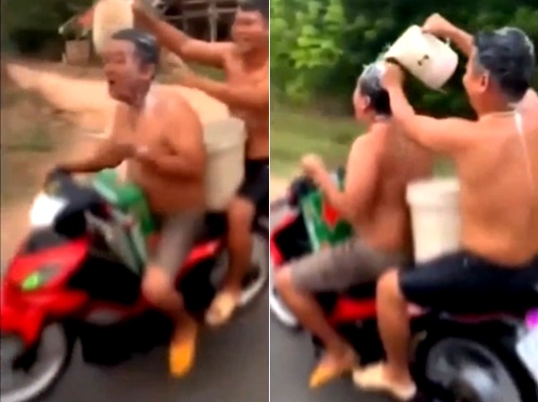बताया जाता है कि दो शख्स बाइक की सवारी करते हुए आराम से नहा रहे थे। उन्होंने बाइक की सीट के बीच में पानी से भरी बाल्टी रख ली। इसके बाद पीछे बैठा शख्स चलती बाइक में मजे से नहाने लगा। वहीं बाइक चलाने वाले ने इसका वीडियो भी शूट किया। मजाक में बनाया ये वीडियो जब सोशल मीडिया पर वायरल हुआ तो लोगों ने उन्हीं का खेल बना दिया।