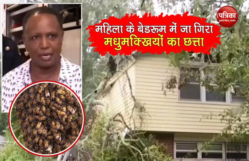 हमारे जीवन में कई बार ऐसी घटनाओं का सामना करना पड़ता है, जिसके बारे में कभी सपने में भी नहीं सोचा होता है। इन घटनाओं में कई लोग अपंग होते है तो किसी जान भी चली जाती है। जब किसी के साथ ऐसा होता है कि उस समय वह समझ नहीं पाता, उसको क्या करना चाहिए। एक ऐसा ही मामला अमेरिका के अलबामा से सामने आया है। यहां तूफान के कारण एक महिला के घर पर पेड़ गिर गया। जिसके चलते घर के काफी नुकसान हुआ है। आपको यह जानकर हैरानी होगी कि उस पेड पर मधुमक्खियों का छत्ता भी लगा हुआ था। पेड़ और छत्ता का बड़ा हिस्सा उस महिला के बेडरूम पर आ गिरा। इसके बाद मक्खियों ने उस पर हमला कर दिया।