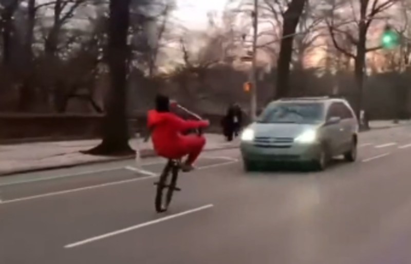 बीच सड़क साइकिल पर व्हीली