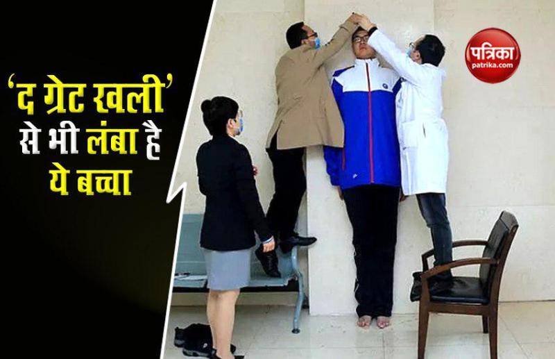अक्सर देखा जाता है कि आज के यंगस्टर्स अपनी लम्बी से खुश नहीं है। वे चाहते की उनकी लम्बी थोड़ी सी और बढ़ जाए। इसलिए कुछ लोग बाजार में उपल्बध कद बढ़ाने के प्रोडक्ट को आजमाते है। इसके बाद भी कई लोगों की लम्बी नहीं बढ़ती है। इस बात का मलाल उनको जीवन भर रहता है। लेकिन आज आपको चीन के एक ऐसे बच्चे से मिलवाने जा रहे है जिसकी लम्बाई के चर्चे दुनियाभर में है। 14 वर्षीय 14 वर्षीय रेन कीयू की हाइट 7.3 फीट है। कीयू ‘द ग्रेट खली’ (7.1 फीट) से भी लम्बा है। इसको दुनिया का सबसे ‘टॉलेस्ट मेल टीनएजर’ माना गया है। सोशल मीडिया पर उनकी तस्वीरें वायरल हो रही है।