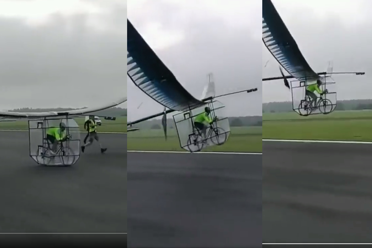 वीडियो में देखा जा सकता है कि एक शख्स जो किसी पॉलीथीन जैसे चीज से कवर है। वह साइकिल पर बैठा नजर आ रहा है। वह शख्स पूरी ताकत के साथ साइकिल पर पैडल मारने लगता है। वीडियो में आप देख सकते हैं कि शख्स पैडल के जरिए साइकिल चला रहा है। साइकिल के साथ प्लेन जैसे विंग्स जुड़े हुए हैं। जैसे ही शख्स साइकिल चलाता है, वह थोड़ी देर में प्लेन की हवा में उड़ती नजर आती है।