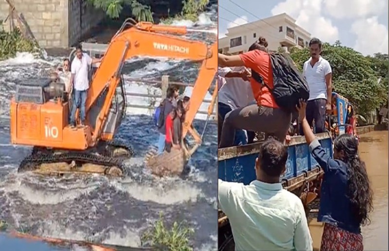 कर्नाटक बीते दिनों हो रही भारी बारिश से बेहाल है। बेंगलुरु में बारिश और बाढ़ से हाहाकार मचा हुआ है। बेंगलुरु समेत कर्नाटक के कई शहरों में भारी बारिश से बाढ़ जैसे हालात हैं। घर और दुकानों से लेकर दफ्तर तक पानी से लबालब हैं। सड़कें दरिया बनी हुई है और कई गाड़ियां जलमग्न हैं। कई बिजी रोड्स पर सड़कों पर तेज बहाव में पानी बह गए। बाढ़ के बाद वॉटर लॉगिंग की समस्या भी पैदा हुई। इसकी वजह से लोग घंटों तक ट्रैफिक में फंसे रहे। कई जगह तो हालात ऐसे हो गए हैं कि लोगों को दफ्तर जाने के लिए जेसीबी और ट्रैक्टर का सहारा लेना पड़ा।