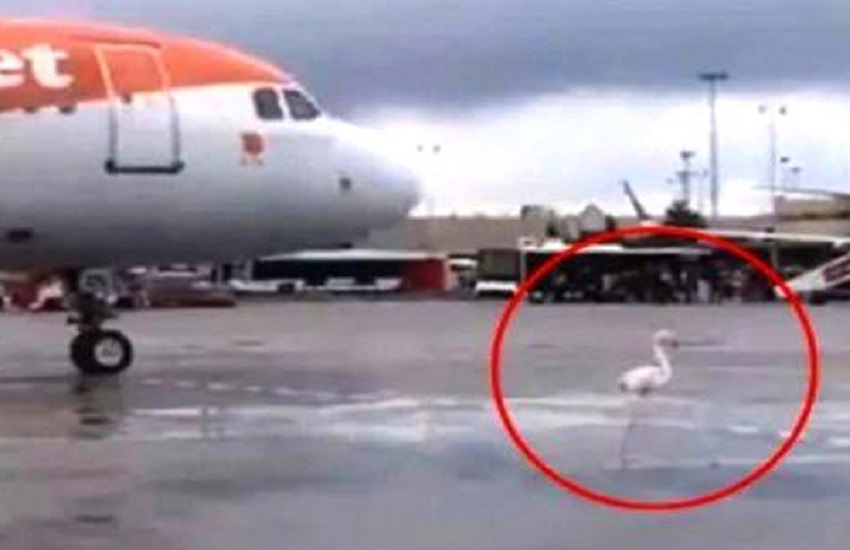 स्पेन ( Spain ) के पाल्मा एयरपोर्ट पर Easyjet एयरलाइन का एक विमान उतरा ही था कि विमान के सामने गुलाबी फ्लेमिंगो पक्षी आ गया। ऐसे में पायलट को ब्रेक लगाने पड़े। यही नहीं पायलट ( pilot ) ने पक्षी को हटाने के लिए हॉर्न भी बजाया, लेकिन वो विमान के आगे से नहीं हटा। वीडियो ( video ) में देखा जा सकता है कि पायलट पक्षी को हटाने के लिए हॉर्न बजा रहा है, लेकिन पक्षी अपनी धीरे-धीरे चाल में विमान के आगे ही चल रहा है। ऐसे में पायलट के पास उसके पीछे धीरे-धीरे चलने के अलावा कोई और रास्ता नहीं था और उसने ऐसा ही किया।