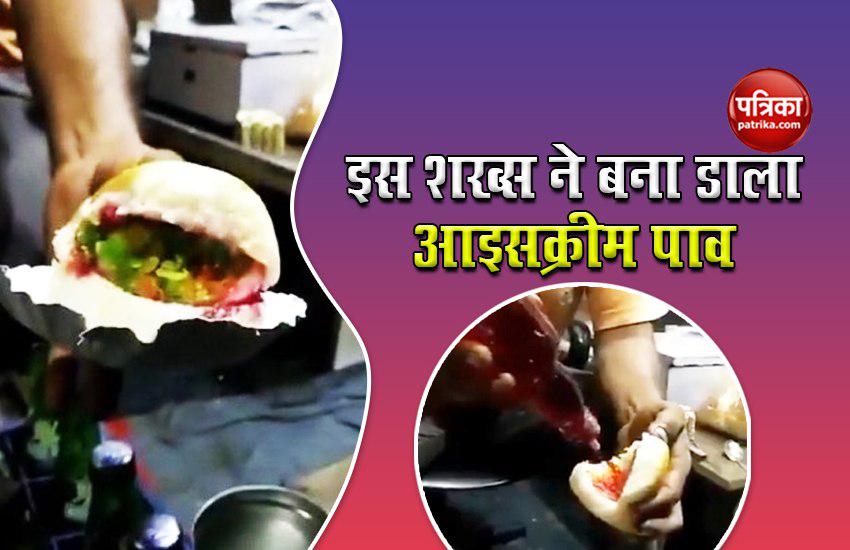 हम में से कई लोगों खाने के बड़े शौकिन होते है। हमने वड़ा पाव, समोसा पाव, भाजी पाव, इडली पाव, मस्का पाव और पाव भाजी कई बार खाई होंगी। इन दिनों एक गुजराती भाई ने ऐसा पाव बनाया है चर्चा का विषय बना हुआ है। इस बंदे में आइसक्रीम पाव बनाकर सभी को चकित कर दिया। सोशल मीडिया पर उकना वीडियो जबरदस्त वायरल हो रहा है और इसको खूब पसंद किया जा रहा है। इस पर लोग अपनी अपनी प्रतिक्रिया दे रहे है। लोगों का कहना है कि इसके बारे में हमने पहले कभी कल्पना भी नहीं की थी। आपको बता दें, महाराष्ट्र में वड़ा पाव खूब खाया जाता है। वहां लोग नाश्ते के रूप में इसे खाते हैं। इसमें हरी-लाल चटनी की लेयर, गनपाउडर और बटाटा वड़ा लगाकर हरी मिर्च के साथ सर्व किया जाता है।