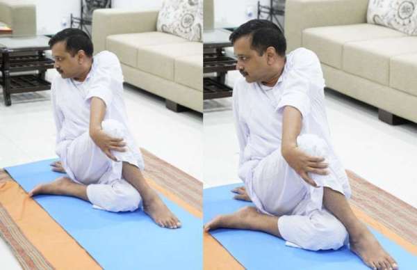 दिल्ली के सीएम अरविंद केजरीवाल ने अपने घर पर मनाया योग दिवस