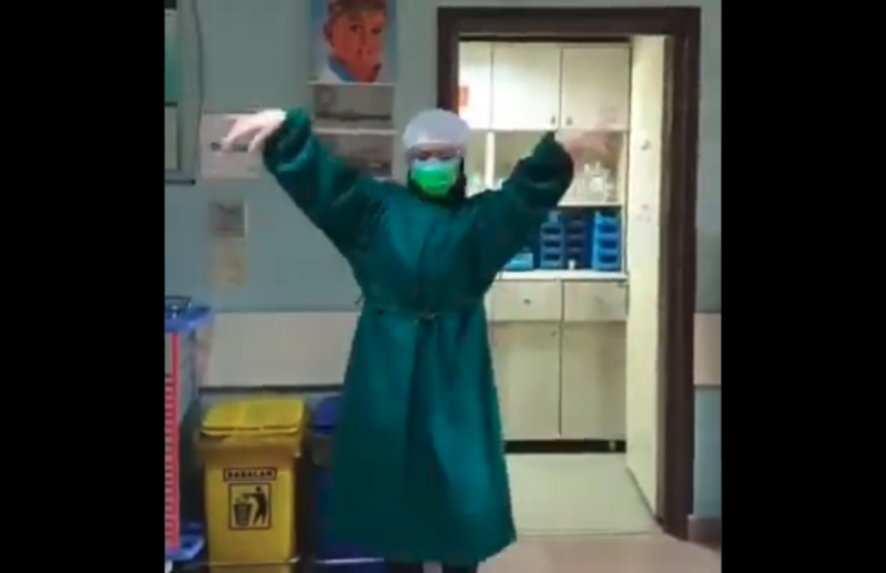 ईरान के कई स्वास्थ्य कर्मचारी अपने काम के बोझ और मरीजों का उत्साह बढ़ाने के लिए डांस कर रहे हैं। वीडियो में देखा जा सकता है कि अस्पताल स्टाफ डांस कर रहा है। एक वीडियो की खास बात ये है कि डॉक्टर्स मीका के सॉन्ग ''हवा-हवा'' पर थिरक रहे है।