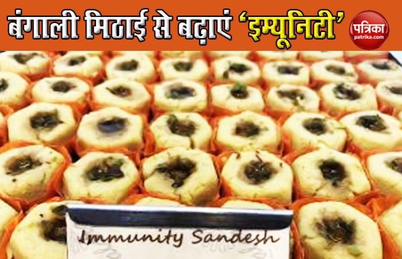 नई दिल्ली। मिठाई (Sweets) का नाम सुनते ही मुंह में पानी आ जाता है और बात जब बंगाली मिठाइयों की हो तो क्या कहना। कोलकाता (Kolkata) के रसगुल्ले से लेकर छेना मिठाई तक हर किसी की फेवरिट है। ऐसे में अगर आपको मालूम चले कि ये स्वीट महज मुंह में मिठास घोलने के ही नहीं बल्कि आपकी रोग प्रतिरोधक क्षमता बढ़ाने (Immune Power) के भी काम आ सकती है, तो कैसा रहेगा। दरअसल कोलकाता में मिठाइयों की एक फेमस स्वीटचेन ने 'इम्युनिटी संदेश' (Immunity Sandesh) नाम से एक खास मिठाई तैयार की है। जिसे 15 तरह की जड़ी-बूटियों (Herbs) और मसालों से तैयार किया गया है। दुकानदार का दावा है कि यह इम्युनिटी बढ़ाने में मदद कर सकता है।