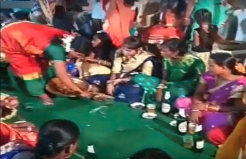 नई दिल्ली: सोशल मीडिया पर रोज कोई न कोई ऐसा वीडियो दिख ही जाता है, जो चौंकाने के लिए मजबूर कर देता है। ऐसा ही एक वीडियो और वायरल हुआ है। वीडियो में दिख रहा है कि भंडारे जैसा माहौल है, महिलाएं जमीन पर बैठी हैं और उन्हें खाना परोसा जा रहा है। वीडियो में सबसे चौंकाने वाली है ये है कि वहां हर महिला के पास शराब की बोतल भी रखी है। कुछ महिलाएं शराब पीती भी नजर आ रही हैं। ये वीडियो इंटरनेट पर खूब देखा जा रहा है।
