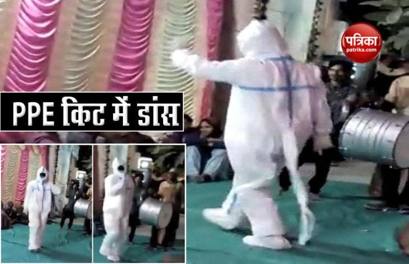 कोरोना काल के बीच सोशल मीडिया पर एक शख्स का डांस वीडियो काफी वायरल हो रहा है। इस डांस वीडियो में एक बंदा पीपीई किट पहने हुए नजर आ रहा है। एक शख्स को पीपीई किट (PPE KIt) पहने बैंड की धुन पर झूम रहा है। खबरों के अनुसार, यह वीडियो राजस्थान के जोधपुर जिले का बताया जा रहा है। सोशल मीडिया पर लोग डांस कर रहे शख्स के साहस की तारिफ कर रहे हैं और उसके डांस को 'कोरोना डांस' का नाम दे रहे हैं।