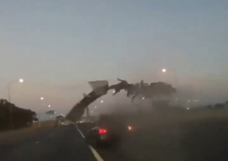 Car driver gets launched in air