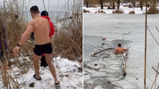 वीडियो में काफी देर तक तो पता ही नहीं चल पाता है कि आखिर शख्स ने ऐसा क्यों किया। कड़ाके की ठंड में आखिर उसने कपड़े उतारकर बर्फीले पानी में क्यों छलांग लगाई। शख्स के नदी में कूदते ही जमी बर्फ भी टूट जाती है।