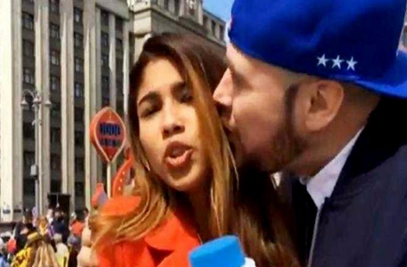 दरअसल, जूलीयथ गोन्जालेज थेरान रूस के सरांस्क में जर्मन ब्रॉडकास्टर डेच्यू वैले के लिए रिपोर्टिंग कर रही थीं। इसी दौरान अचानक एक युवक आता है और रिपोर्टर को किस करके चला जाता है। फैन का ऐसी हरकत के बाद भी जूलीयथ ने अपनी रिपोर्टिंग को जारी रखा।