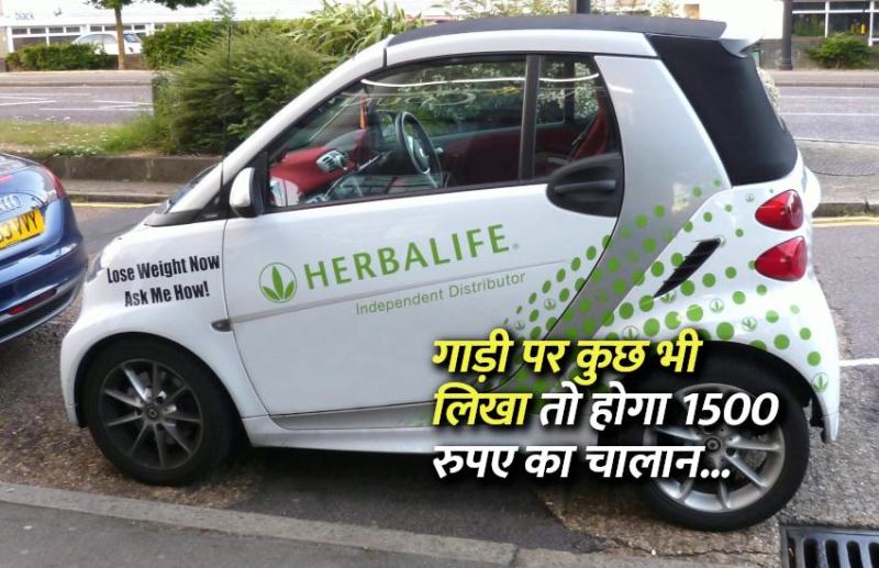 अगर आप भी अपनी गाड़ी पर कुछ लिखवाना चाहते हैं तो यह खबर पूरी तरह से आपके लिए ही है। केन्द्र सरकार द्वारा बनाए गए नए व्हीकल एक्ट CMVR - CENTRAL MOTOR VEHICLE RULES में इसके लिए पूरी गाइडलाइन दी गई है भले ही आपके दोपहिया या चार पहिया वाहन हों। अगर आपने इन नियमों का पालन नहीं किया तो आपको चालान के रूप में 500 रुपए से लेकर 1500 रुपए तक का जुर्माना भरना पड़ सकता है। जानिए क्या है नई गाइडलाइन