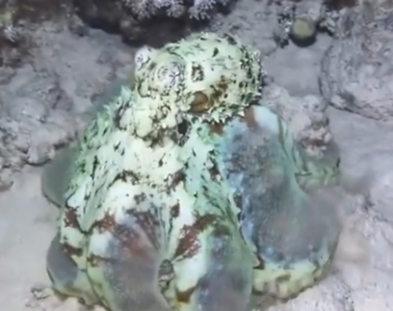 सोशल मीडिया पर अक्सर ही कई तरह के वीडियो देखने को मिलते हैं। इनमें जानवरों के वीडियो भी शामिल हैं। सोशल मीडिया पर इसी तरह का एक वीडियो शेयर किया गया है। यह एक ऑक्टोपस का वीडियो है जो पानी के अंदर है। पानी के अंदर तैरता हुआ ऑक्टोपस अचानक से रुक जाता है और अपना रंग बदल लेता है। फिर ऑक्टोपस एक बार दोबारा अपने पहले वाले रंग में आ जाता है और तैरते हुए आगे बढ़ता है।