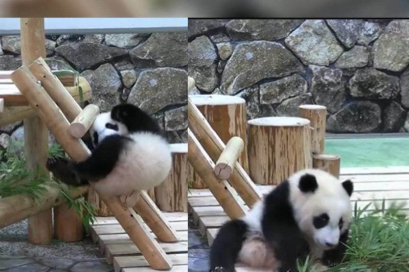 Panda Rolling Down From A Ladder Cute Panda Video viral