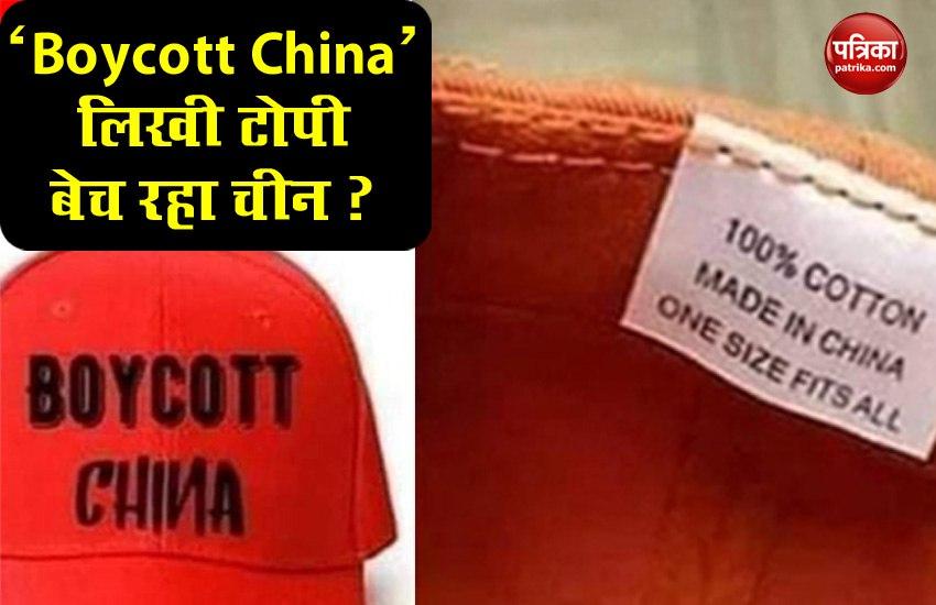 लेकिन इन सब के बीच सोशल मीडिया पर कुछ तस्वीरे साझा कि जा रही है। इन तस्वीरों के जरिये दावा किया जा रहा है कि भारत में चीन के बहिष्कार की मांग उठते देख चीनी कंपनियों ने खुद ही ‘Boycott China’ लिखी टोपियां और टी-शर्ट बनाना शुरू कर दिया।