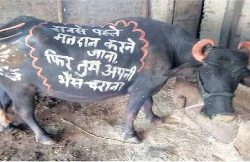 मतदान के लिए जागरुक कर रही हैं भैंस, पोस्टर की तरह किया जा रहा है इस्तेमाल