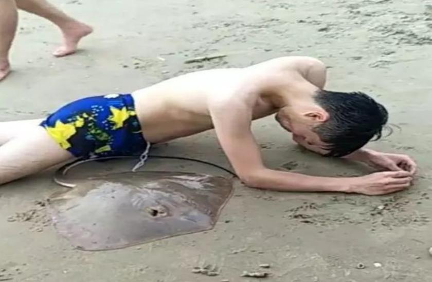 नई दिल्ली: चीन में एक शख्स को समुद्र में स्विमिंग करना भारी पड़ गया। स्विमिंग के दौरान ही अचानक उसे महसूस हुआ कि उसके अंडरवियर में कुछ है। जब उसने हाथ लगाया था उसे होश उड़ गए। वह तुरंत पानी से बाहर आया और देखा कि एक स्टिंग्रे नाम की एक मछली की पूंछ उसके अंडरवियर के अंदर थी। वह असहनीय दर्द की वजह से बीच पर ही लेट गया और मदद की गुहार लगाने लगा। बता दें, ये किस्सा एक सितंबर का बताया जा रहा है। मौके पर मौजूद किसी शख्स ने पूरी घटना का वीडियो बनाकर सोशल मीडिया पर शेयर कर दिया, जो अब वायरल हो रहा है।